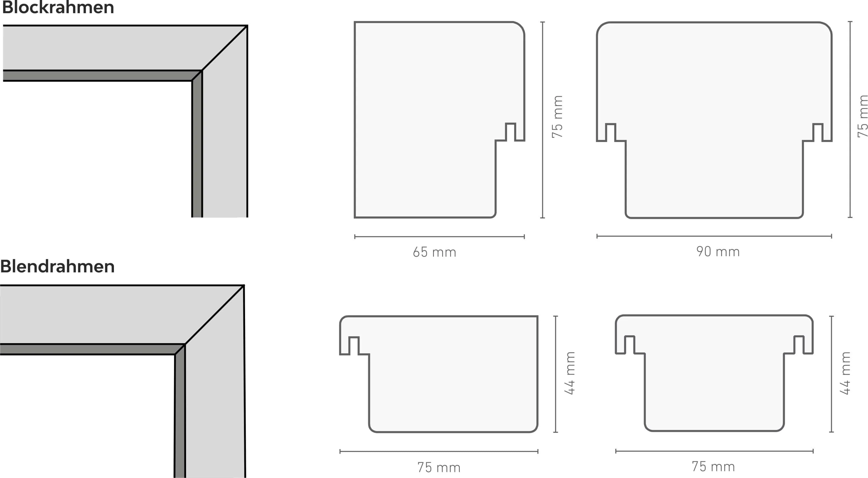 Rámové zárubně Blendrahmen a Blocrahmen jsou určeny zejména pro dodatečné osazení zárubně (prosklené stěny) do prostoru bez špalet. Jsou vhodné např. pro předělení chodby.