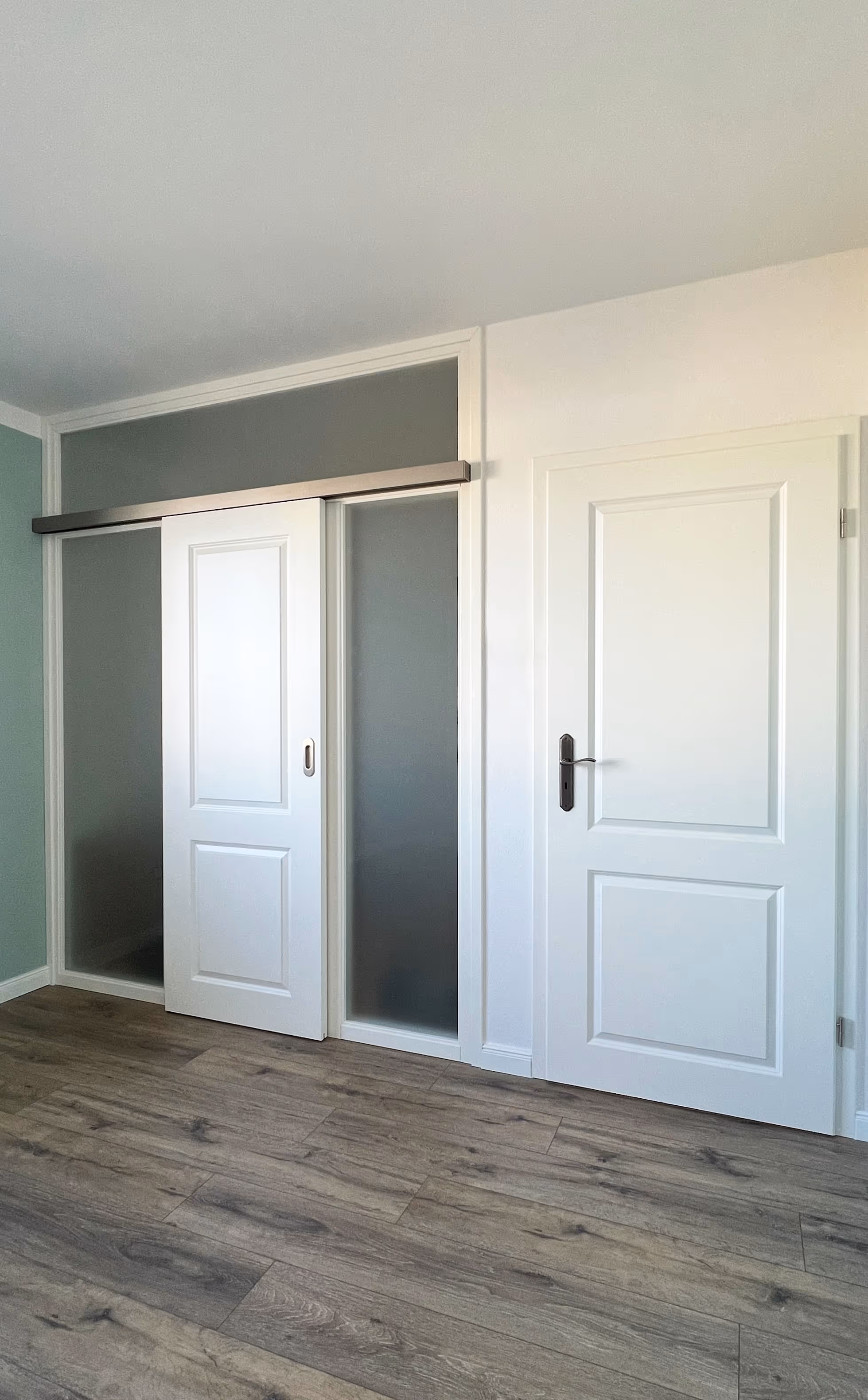 Neutrálny základ pre zariaďovanie domácnosti dáva možnosť meniť atmosféru interiéru vždy keď zatúžite po zmene...Pri realizácii boli dodané profilované interiérové dvere z kolekcie PRÜM Classic. Dvere PRÜM Classic C2 v otočnej a posuvnej verzii na stenu s nerezovým posuvným kovaním SLIM a presklenou stenou typu WF4A doplnené o presklené dvere Classic CKL1 v Bielej exclusív. Krásne zladené aj s retro štítovým kovaním.