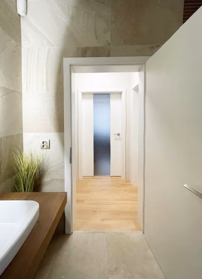 Nové dvere PRÜM Royal 1D v čisto bielej farbe (9016) v hladkom plnom prevedení aj v dizajnovom modeli LA5 s čírym sklom Float a nepriehľadným sklom Satináto biele. Naši PRÜM Partneri v rámci realizácie kombinovali falcové i bezfalcové varianty, prispôsobili sa štandardným aj atypickým rozmerom a zaistili precízne zameranie cez pôvodné zárubne.