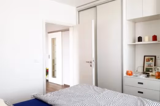 Pokiaľ hľadáte biele dvere s jemnou štruktúrou dreva, ste na správnej adrese. Svetlé farby dokážu rozjasniť aj panelákový byt mladého páru. Pri realizácii na nás dohliadala fenka malého Jorkšírského teriéra Anie, ktorá je súčasťou rodiny, a tiež aj ona testovala kvalitu dverí PRÜM.